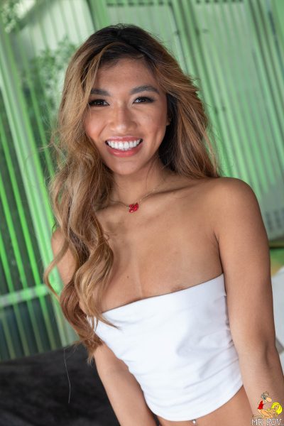 Big smiling Asian porn star Clara Trinity at MrPOV