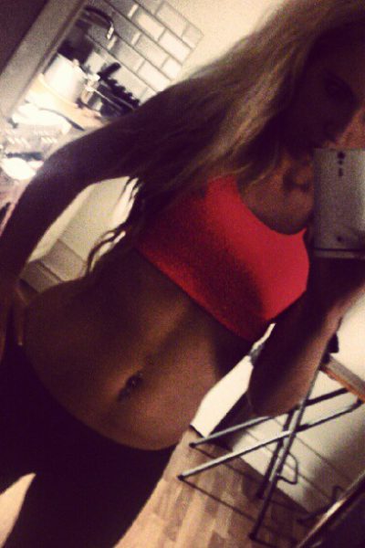 This tight body blonde fitness babe is taking self pics with her cell phone. She’s a really pretty amateur girl with a nice face, hot and tight body, and really nice cleavage and tits from what we can see from her non nude pictures. I love amateur girls wearing their tight gym gear, spandex and tube tops… yummy amateur abs!